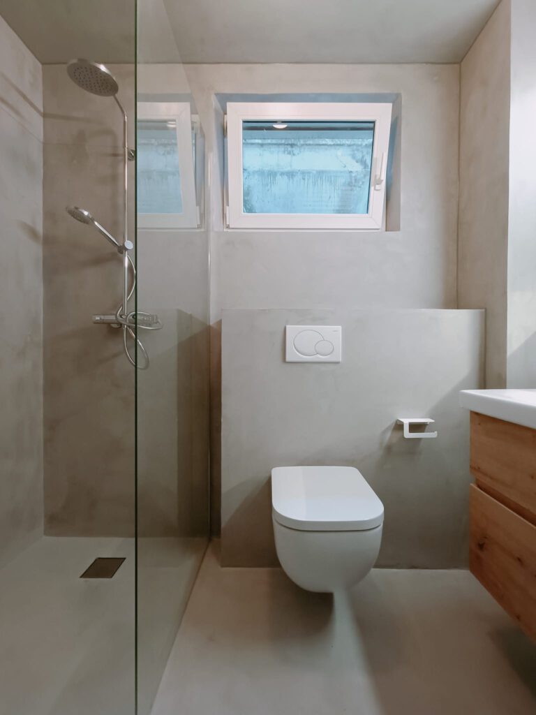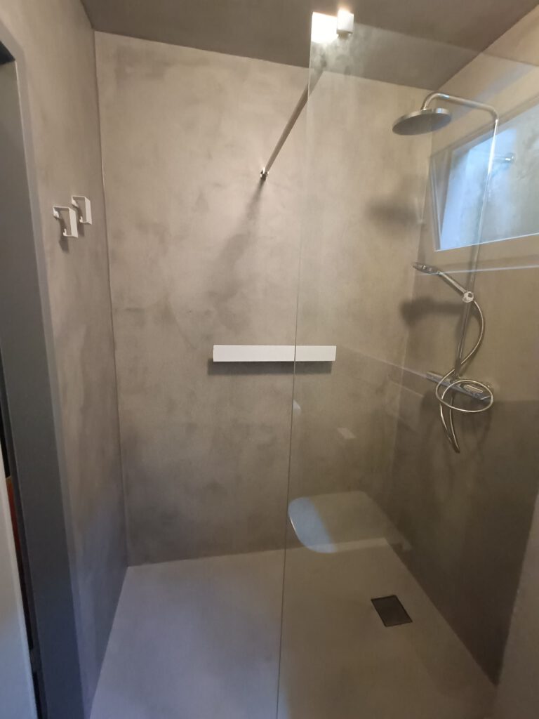 projekteMikrozement im badezimmer Terrassenbau WPC (Wood plastic composite) Terrassenbau Steinplatten Click Vinylboden in Holzoptik
